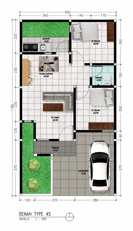 Luas Tanah 78 m2 | Luas Bangunan 45 m2 | ||