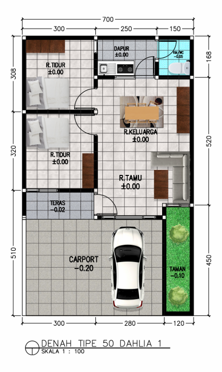 Luas Tanah 80 m2 | Luas Bangunan 50 m2 | ||