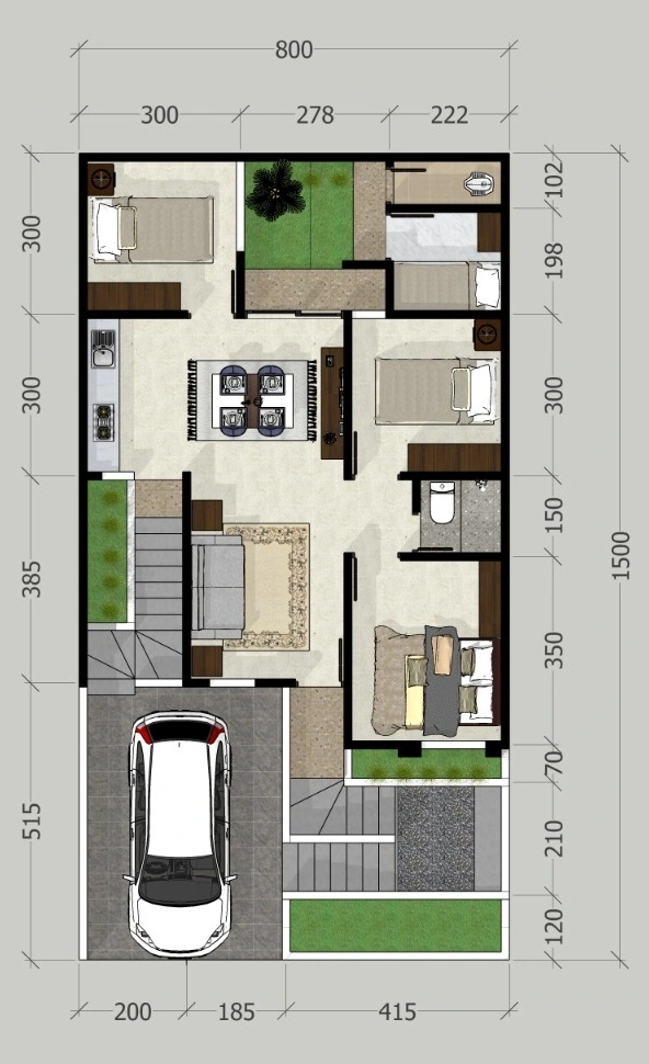 | Luas Tanah 120 m2 | Luas Bangunan 68 m2 | ||